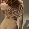 Acest body accesorizat cu maneci este realizat cu umerii goi, oferind un aspect feminin și elegant, dar poate fi purtat și peste umeri datorită stofei care completează armonios designul și adaugă un plus de rafinament. Croiala atent lucrată evidențiază silueta, iar materialul plăcut la atingere asigură confort pe tot parcursul purtării, transformând acest body într-o piesă versatilă, potrivită pentru ținute moderne și sofisticate, atât pentru ocazii speciale, cât și pentru apariții de zi sau de seară.