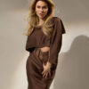 Acest bolero delicat este alegerea perfectă pentru a completa o tinuta și a adăuga un plus de eleganță și feminitate. Cu o croială scurtă, care se oprește subtil sub bust, piesa evidențiază armonios linia corpului și oferă un efect rafinat și sofisticat.