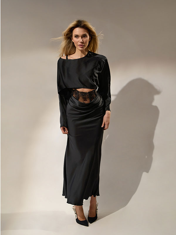 BLUZA NEAGRA CU EFECT DE CONTURARE