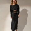 FUSTA MAXI CU CORSET ATLAS NEGRU