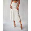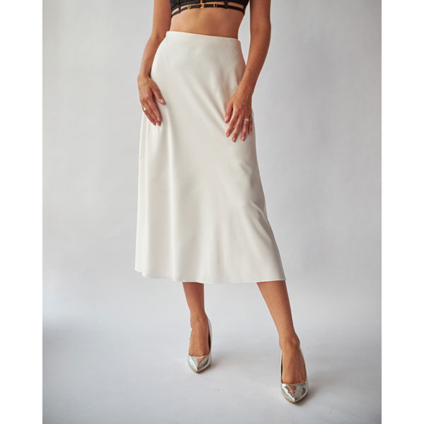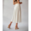 Fusta midi are o croială lejeră, trapezată în formă de A, care flatează silueta fără a o îngreuna, evidențiază talia și se deschide ușor spre tiv, oferind un efect delicat și echilibrat.