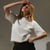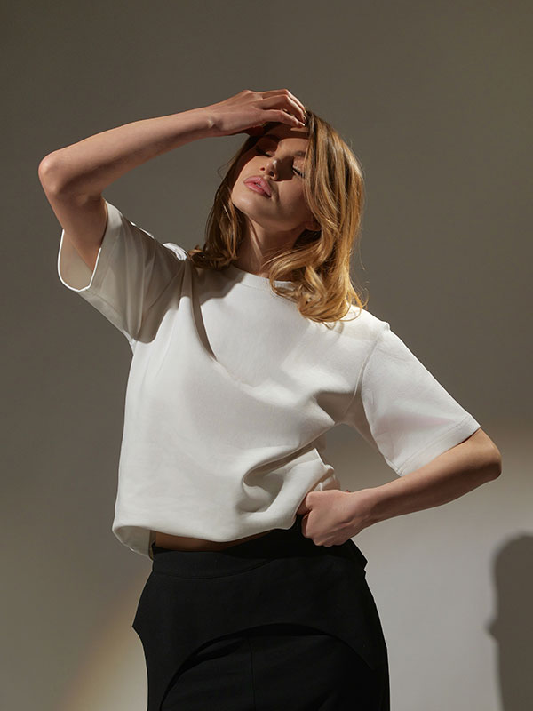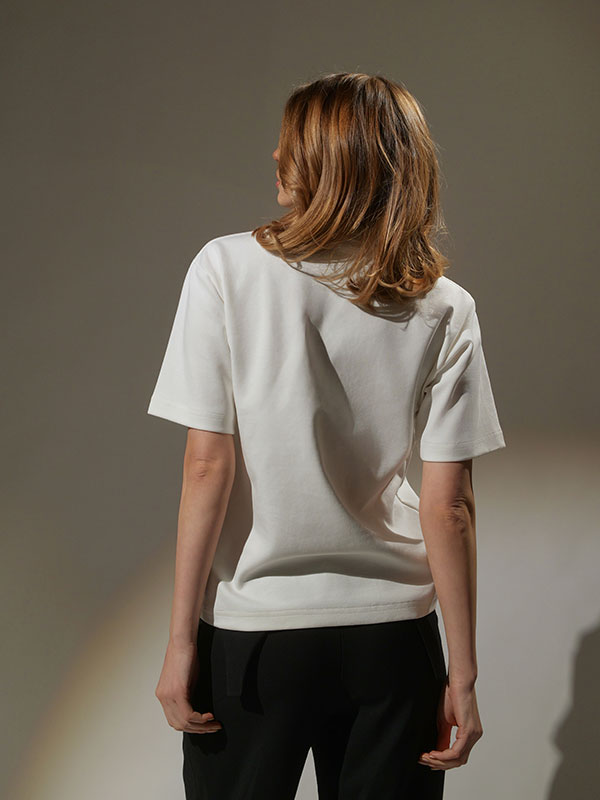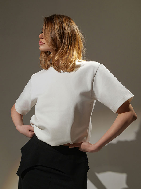 Tricou din bumbac cu împletitură în 2 fire, material dens și calitativ care își păstrează foarte bine forma după purtare și spălare. Model lejer, tip oversize, cu gât rotund și mâneci mai lunguțe, pentru un look modern și relaxat. Textură plăcută, respirabilă și confortabilă pentru purtare zilnică.
